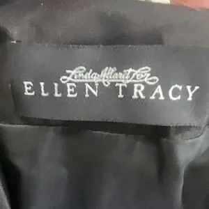 Elegant Ellen Tracy vintage black belted trench coat dress featuring a wide collar and a matching belt. Great vintage condition all fasteners still work. Just a beautiful dress/coat. Vintage size 6