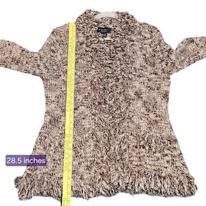 NINE WEST Cardigan Sweater Women Large Brown Wool Blend Y2K Ruffle Trim Shaggy