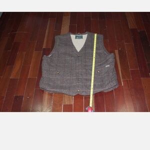 VTG Woolrich Wool Herringbone Check Brown Men's Vest Sherpa Lined Sz XL Grandpa