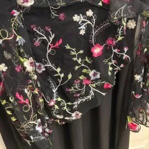 Color: Black with multicolor floral embroidery (pink, green, purple)