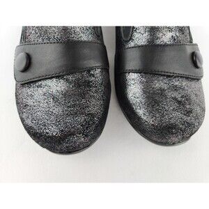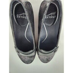 Super cute and comfortable! Dansko Black Metallic pewter Flats size 37. Per Dansko website 37 = 6.5-7 US women's. Gently pre-owned, good condition. Appear a bit more sparkly metallic under photography lights, then natural setting.