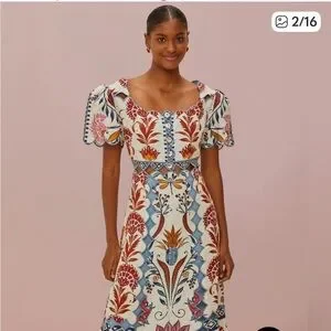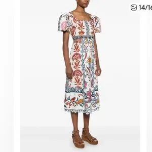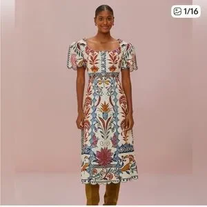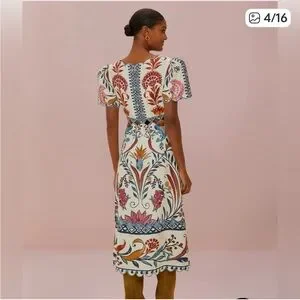 Farm Rio- Romantic Lightness Short Sleeve, embroidered Midi Dress size S - NWOT