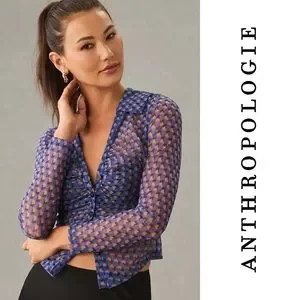 Anthropologie Maeve Sheer Ruched Buttondown Blouse