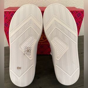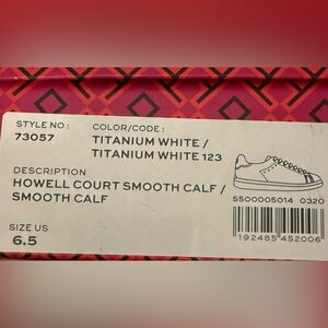 Elegant Howell Court white sneakers with lace-up design. Ideal for everyday style. Lightweight and flexible. New in box. Only flaw is the Tory Burch decal inside shoe rubbed off during wear inside while deciding on fit.
