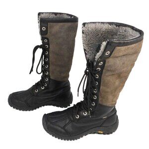UGG Australia Adirondack Event waterproof black & tan lace up fur lined boots with Vibram soles women's size 8