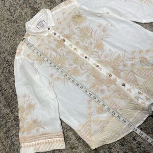 Johnny Was Devere Kimono Sleeve Shirt 100% Ramie embroidered button down blouse size medium