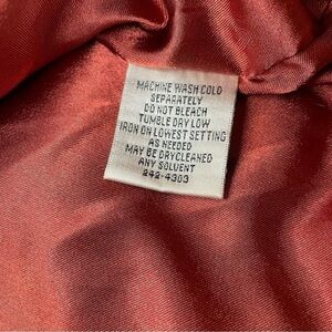 100% Polyester, Machine Wash. Lined in orange polyester.