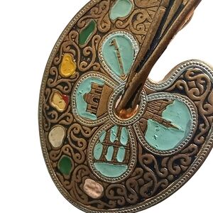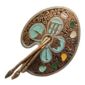 Vintage Womens Brooch Painters Palette Enamel Gold/Silver Tone Jewelry