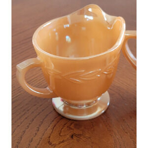 Vintage Cream & Sugar Set Fire King Peach Luster Laurel Ovenware Anchor Hocking