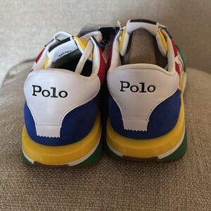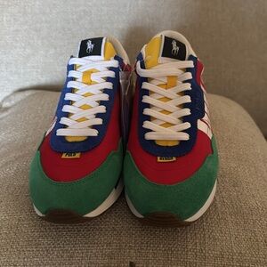 Dynamic sneakers featuring blue, yellow, red, green, and white. Ideal for a standout style. New