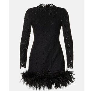 Black (Main: 60% Cotton 40% Nylon; Feathers At Hem: 80% Turkey Feather. 20% Ostrich Feathers Farm-Raised). Cocktail Dresses. Crew Neck. Long Sleeve. Back Zipper Closure. Shoulder to Hemline Length: 22.5".