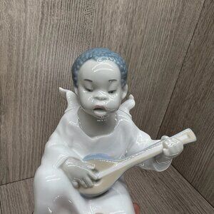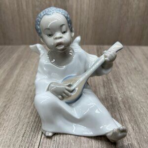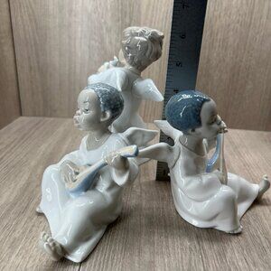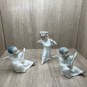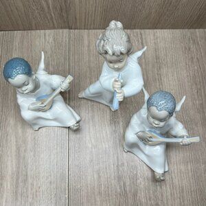 Lladro Angel Figurines Flute & Lute Musicians Porcelain Cherub Set of 3 White