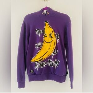 One word: Amazing. This thick terry cotton limited edition sweatshirt by Philipp Plein Features a raised banana appliqué, embroidered seams, side pockets and PP logo. in great preowned condition. Drawstring is unfortunately missing and price is discounted to reflect. Made in Switzerland.