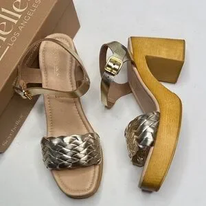 Seychelles Timber Gold Metallic Platform Wood Chunky Block Heel Sandal NEW