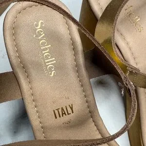Seychelles Timber Gold Metallic Platform Wood Chunky Block Heel Sandal