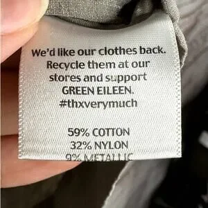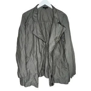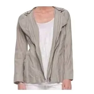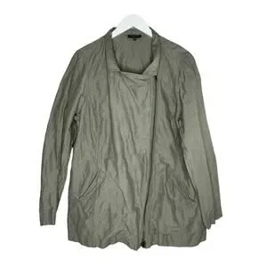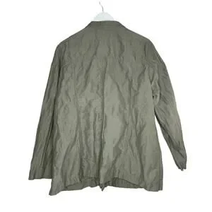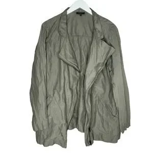 Eileen Fisher Beige Taupe Green Metallic Rumpled Crinkle Textured Cotton Blend Lightweight Jacket