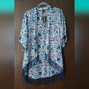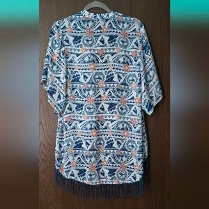 Elevate your style with the women's top, featuring a striking blue and orange pattern. Perfect for any occasion. Smoke free, pet free home.
