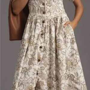 Anthropologie Pilcro fine-waled corduroy floral drop waist dress RUNS SMALL