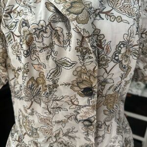 This absolutely beautiful floral dress is perfect for fall. It was advertised as being denim, but this is definitely fine-waled corduroy. It is super soft. It has two pockets and it has a bit of a drop waist. It had a very 1980s vibe to it, which is why I loved it. Although this says it is a size 12 on the tag this is definitely more like an eight or a 10.