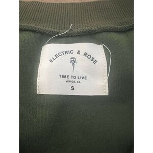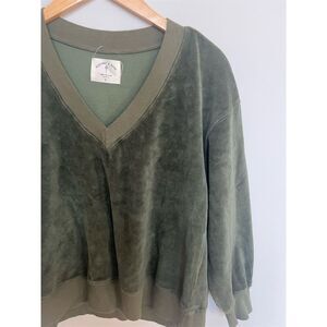 Keywords: Electric & Rose sweatshirt, women's green sweatshirt, V-neck sweatshirt, basic style sweatshirt, velour fabric sweatshirt, cotton polyester blend, USA made sweatshirt, women's regular size, small size sweatshirt, women's fashion, casual wear, comfortable sweatshirt, stylish women's top, new condition sweatshirt, women's clothing.