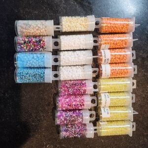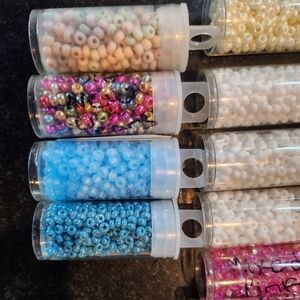 Seed beads, approximately 75 different types. Assortment of frosted, matte, clear, glass etc