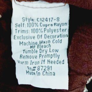 Fabric: Self: 100% Cupra Rayon, Trims:100% Polyester