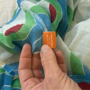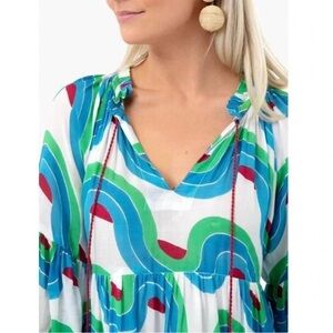 Vibrant retro lightweight dress with balloon sleeves. Features shades of blue, green, and red. Only worn once!! Free shipping!