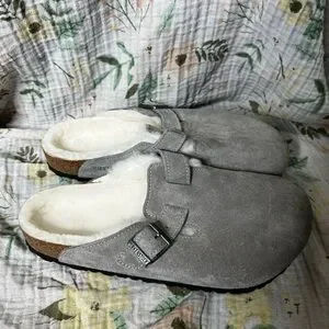 Birkenstock Boston Gray Suede Shearling Clogs Women’s Size EU 40 US 9/9.5