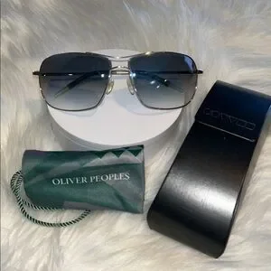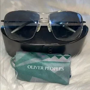 Oliver Peoples Silver and Blue Aviator Sunglasses