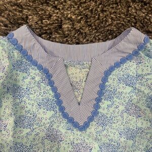 Charming kids' blouse with a light blue and white pattern. Features a comfortable fit and stylish design.