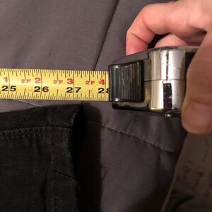 Pretty cool woman’s boo-hoo blue black destroyed jeans size 4 mid rise great preowned condition... measurements pictured