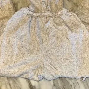 Cozy gray hoodie and sweatpants set. Features drawstring hoodie and elastic waist pants. Perfect for lounging.