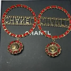 Chanel Red Leather and Gold Chain CHANEL Hoop Pearl Earrings 929 shipped Pearl