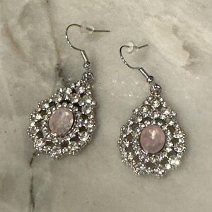4pc pink / silver jewelry set 1 necklace 1 bracelet 2 sets earrings