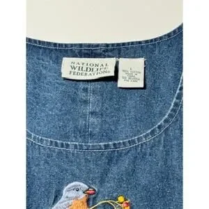 Vintage National Wildlife Federation Denim Jumper Dress Birds Pockets Large