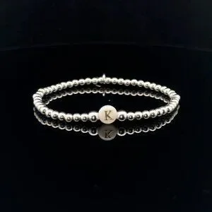 Material: 925 sterling silver 3mm beads, two 4mm Sterling Silver beads, Mother of Pearl Initial Letter and Rafanthia tag. Strong, durable, non toxic elastic.
