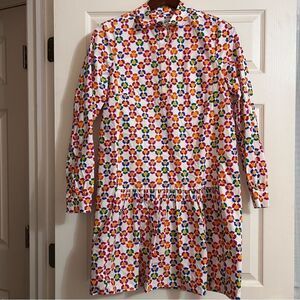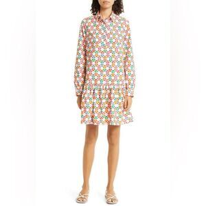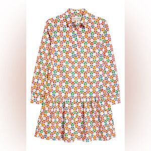 Really pretty NWOT, not worn, tags just taken off, poplin mini dress, A vivid print emboldens this poplin shirtdress crafted with a flouncy ruffle hem. Spread collar Long sleeves 100% cotton Dry clean Imported