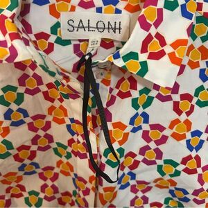 Saloni Geometric Long Sleeve Poplin Shirtdress Ruffle Hem US 4
