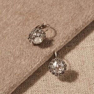 These sophisticated drop earrings are covered in Swarovski crystals for a subtle pop of sparkle. Hinge back closure 0.8"L; 0.5"W Gold-plated brass, Swarovski crystals Imported