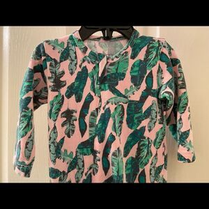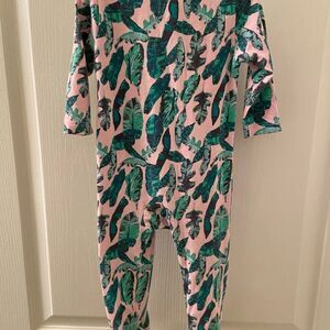 Egg by Susan Lazar Girls Pink Green Leaves Footed Zipper Sleeper Size 6 Months