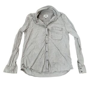American Eagle Womens Grey Casual Button Down Size S Preppy Casual Fall Career