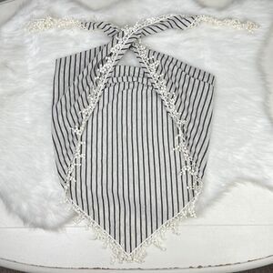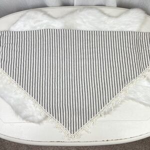 ⚓️ NWOT Oatmeal Black Striped Triangle Bandanna Scarf Lace Fringe Forever 21 OS