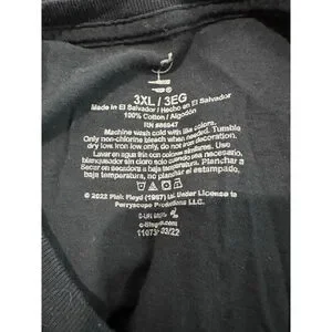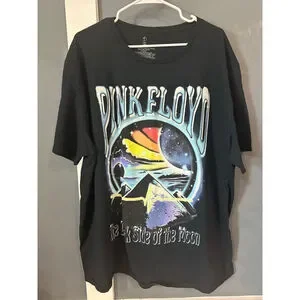 This black short-sleeve t-shirt features a large "PINK FLOYD" graphic on the front. The design includes a circular image depicting a prism, space, and a pyramid, with "The Dark Side of the Moon" text below. The back is plain black. The tag indicates a size 3XL/3EG, 100% Cotton material,