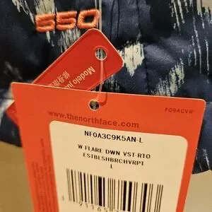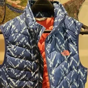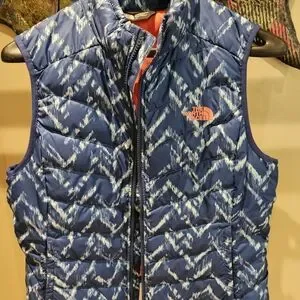 Stylish and warm vest with a unique blue pattern. Ideal for outdoor fun. Women's Flare Vest, 550, slim fit, NWT, never used. Fast shipping, offers welcome.