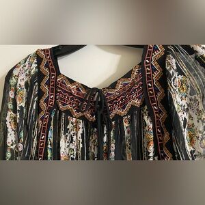 Stylish top sheer with colorful embroidery. Features intricate patterns. No holes no tears no stains no rips free smoke free home.
