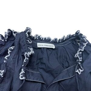 ULLA JOHNSON Sz 2 Amandine Cold Shoulder Cotton Poplin Navy Blue Blouse Top EUC