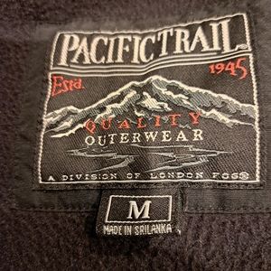 Pacific Trail fleece and quilted lined jacket. Four front pockets with velcro closures, the 2 upper pockets with zipper closures also. One inside net pocket. Adjustable cinched waist. Approximate measurements are: 25" armpit to armpit, 22" shoulder to cuff and 30" shoulder to hem. In very good preowned condition. The third snap on the front won't snap together, but its hidden and you don't really need it because it has a zipper. (See last photo).
