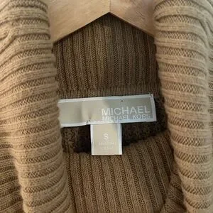This Michael Kors pullover sweater is a stylish addition to any wardrobe. The waffle-knit pattern and chunky design make it perfect for casual wear, while the turtleneck and long sleeves provide warmth and comfort on cooler days. The luxurious blend of polyester and cotton ensures a soft feel against the skin.