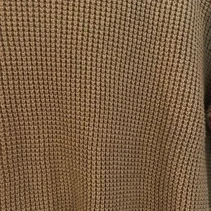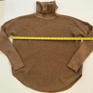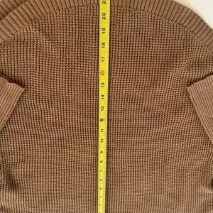 The sweater is a size S and comes in a beautiful brown color. It features a pullover style with no closures, adding to its effortless appeal. The designer sweater is perfect for those who love oversized and casual clothing, and it is sure to become a favorite in your collection.