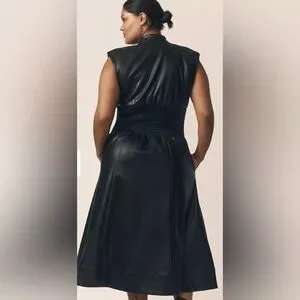 Anthropologie The Tommie Cap-Sleeve Smocked Front-Zip Shirt Dress: Faux-Leather Edition